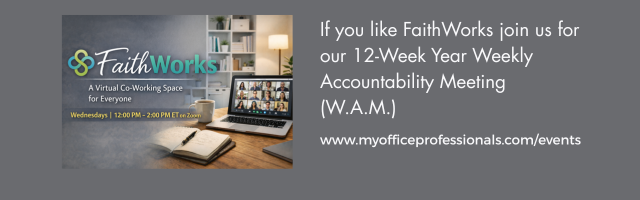 FaithWorks is a virtual co-working space designed professionals, entrepreneurs, and leaders who want to work with focus, purpose, and accountability — without working alone.